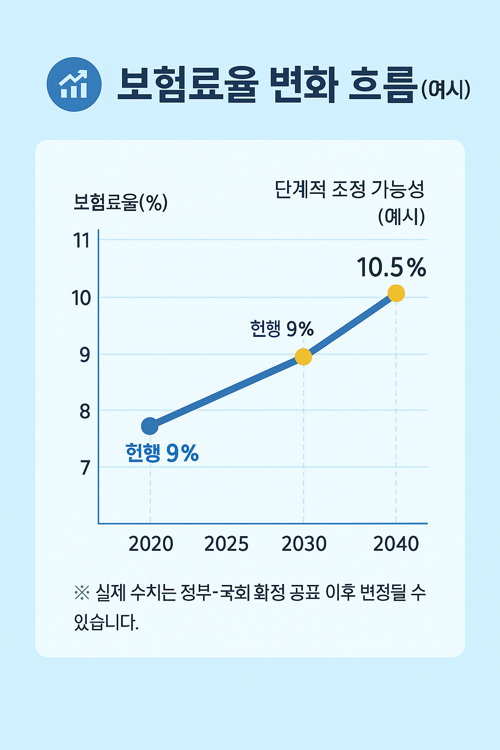 - 보험료율 단계적 조정 가능성(연차별 인상/유지 여부는 확정 기준 참조)