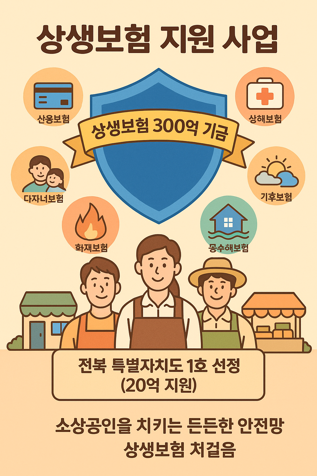 상생보험 지원사업 전북 1호 선정! 소상공인 보험료 전액 지원 핵심 정리(20억·3년·6대 상품)