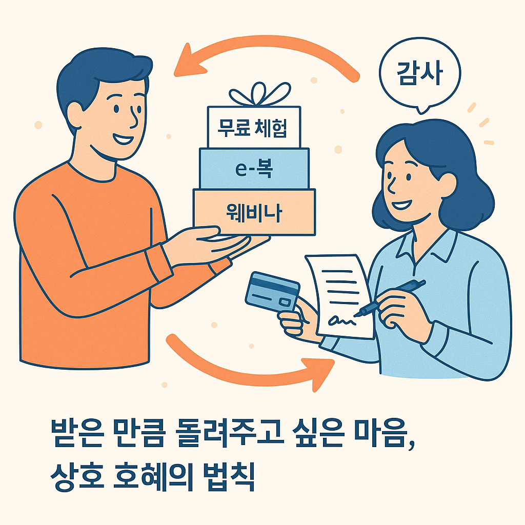 상호 호혜 원칙은 단순한 마케팅 트릭이라기보다, 인간의 본능적 심리에 기반한 신뢰 형성 방법입니다. “받았으니 돌려줘야 한다”는 느낌은 소비자 행동을 이끄는 강력한 엔진이 되죠. 그러나 그 엔진이 오래 달리려면, 제공하는 '호의'가 진정성과 실질적 가치를 담고 있어야 합니다.