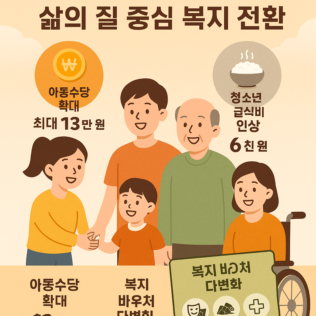 2026년 복지정책의 변화는 아동수당 확대, 청소년 급식 현실화, 복지 바우처 다변화로 요약됩니다. 이는 정부의 복지 패러다임이 생계 보장 중심에서 삶의 질 향상 중심으로 전환되고 있음을 보여줍니다. 또한 지역 균형 발전과 저출생 대응이라는 국가적 과제를 동시에 담고 있어 그 의미가 큽니다.