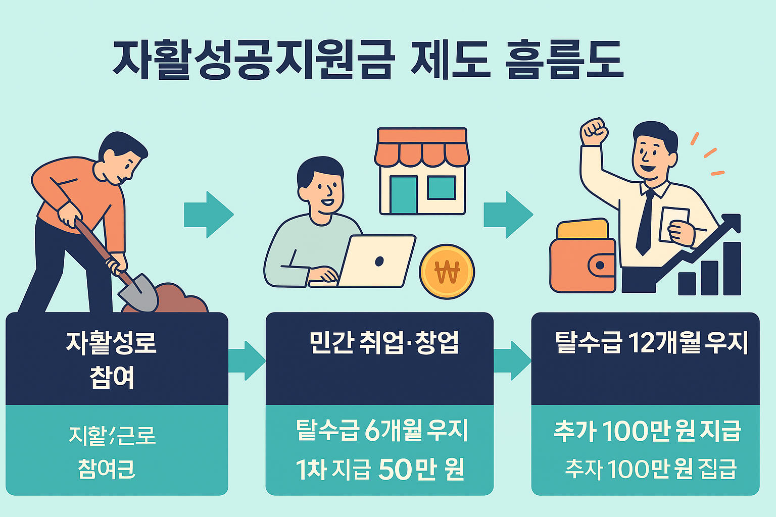 2025년 10월부터 전국 지자체에서 단계적으로 시행되며, 경제적 자립을 목표로 하는 수급자들에게 실질적인 보상을 제공해 민간 일자리 안착과 창업 성공률을 높이려는 취지로 마련되었습니다.