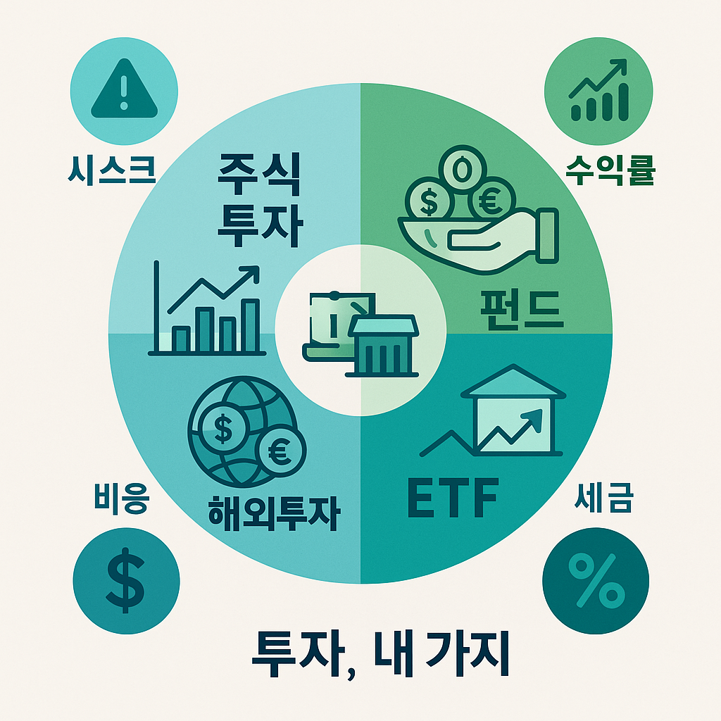 주식, 펀드, ETF, 해외투자는 각각 특성과 장단점이 분명합니다. 단일 자산에 집중하기보다 다양한 자산에 분산투자하여 리스크를 관리하는 것이 일반적으로 권장됩니다. 특히 세금과 거래비용은 실제 수익에 직접적으로 영향을 주므로 반드시 고려해야 합니다.