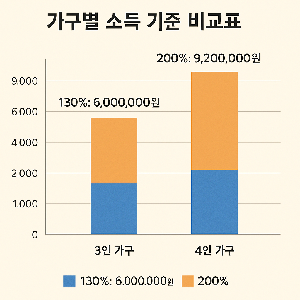 | 맞벌이 부부(부부 모두 소득 있음) | 기본 130% → 200% 이하 허용 | 명문화된 조항, 소득 산정 방식 일원화 |