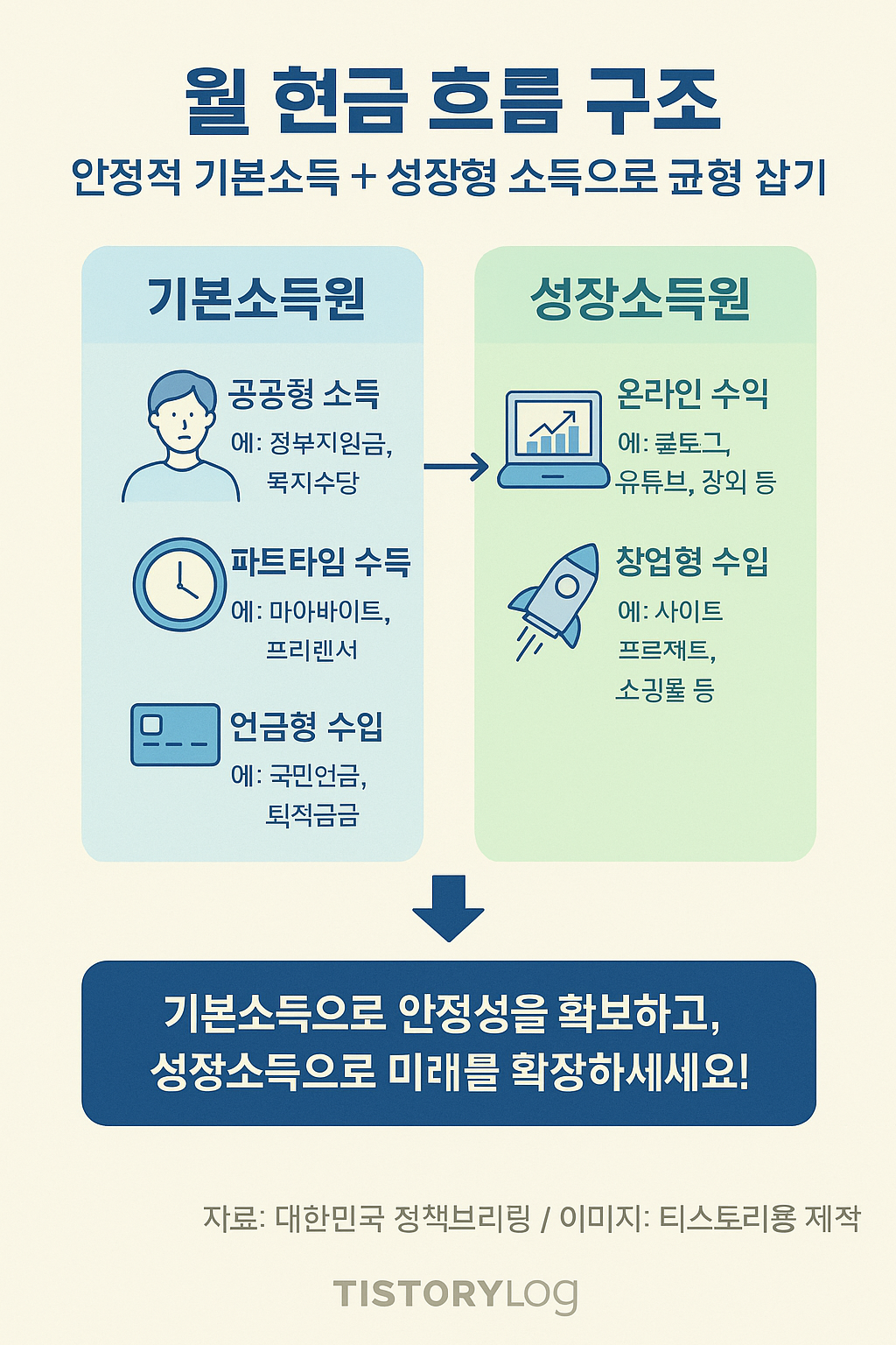 실행 팁: “월 1~2건의 공공형 일거리 + 주 2~3일 전직 파트타임 + 연금 수급 일정 최적화”를 조합하면 변동성이 낮은 기본 현금흐름을 만들 수 있습니다.