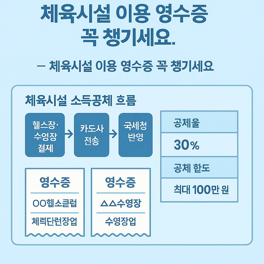 · 팁: 4대보험 자격득실, 급여명세, 사업자 매출증빙 등 유지 입증 자료를 분기별로 모아두기 - 체육시설 이용료 소득공제(7월 시행) · 대상: 총급여 7천만 원 이하 근로소득자