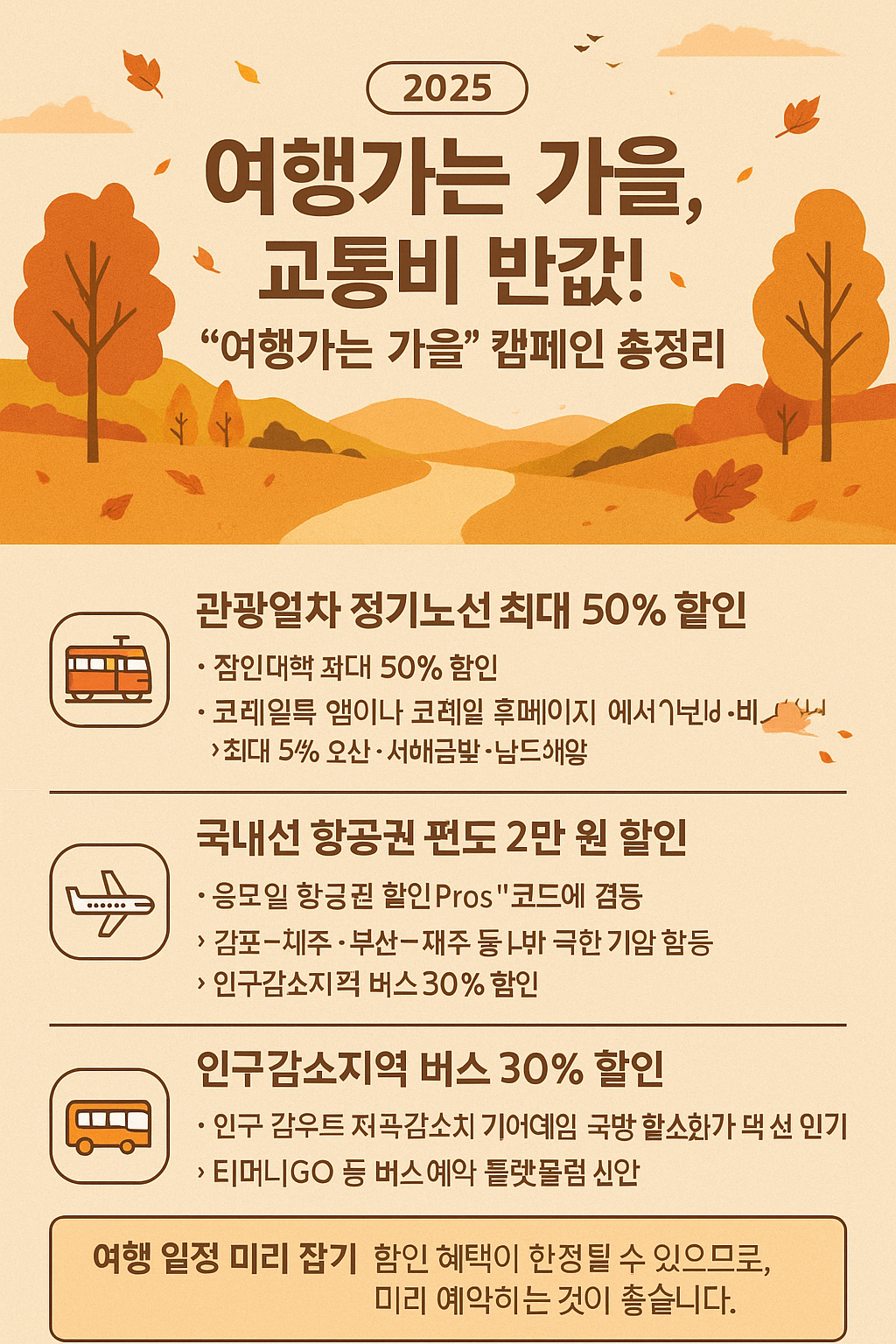 🍂 2025 가을 여행, 교통비 반값! “여행가는 가을” 캠페인 총정리