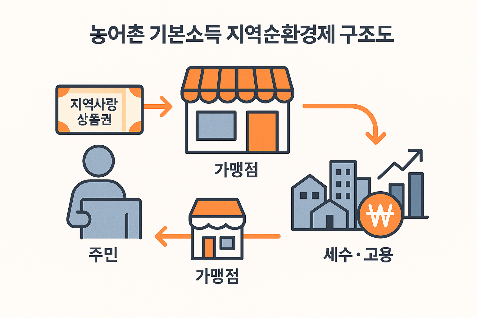 - 지역 내 소비 고정: 상품권 형태로 농어촌 기본소득 재원이 지역상권을 직접 순환.