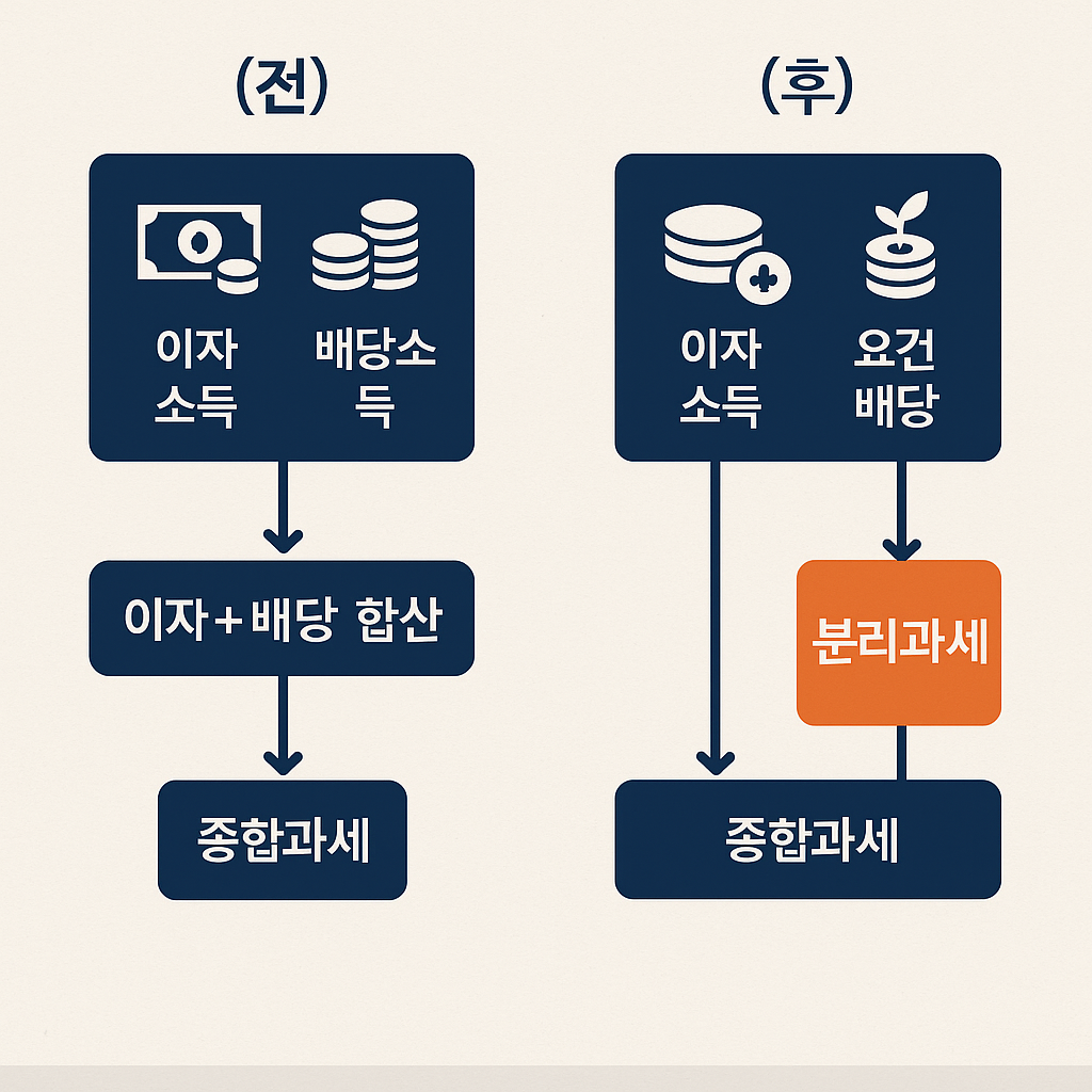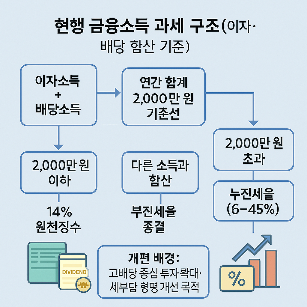 2025년 7월 31일 기획재정부가 공식 발표한 2025년 세제개편안을 바탕으로, 금융소득종합과세 구조 변화와 배당소득 분리과세 신설 내용, 투자자 영향과 대응 포인트를 정리했습니다. (정부 발표·확정안 기준 안내이며, 국회 심의 과정에서 일부 조정 가능성이 있습니다.)
