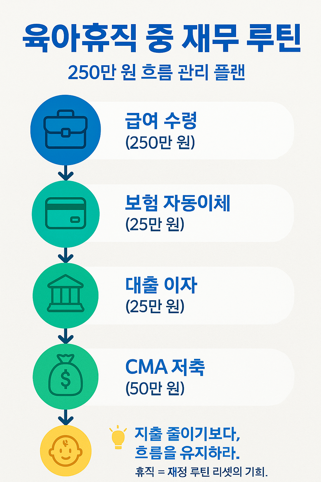 핵심은 “현금 흐름을 끊지 않는 구조”입니다. 육아휴직 기간에는 지출보다 보장·상환 리듬이 중요합니다.