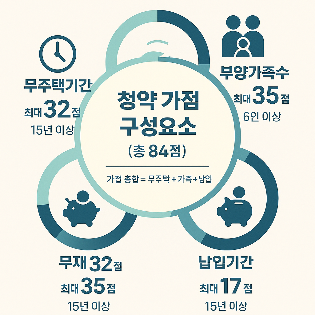 가점이 높을수록 당첨 확률이 높습니다. 특히 무주택 기간이 길고 부양가족이 많을수록 유리하며, 청약통장을 오래 유지할수록 점수가 올라갑니다.