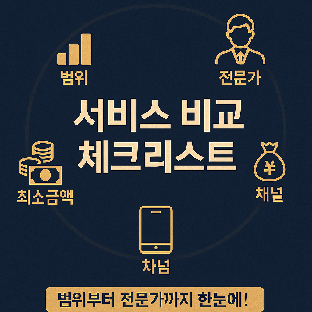 ② 비교축: 서비스 범위(세무·법률·부동산·승계 포함 여부), 전문가 조직, 대체투자 접근성, 채널(센터/모바일/디지털PB), 공개된 최소자산/상품 최소가입 등. [1][2][4][6][7]