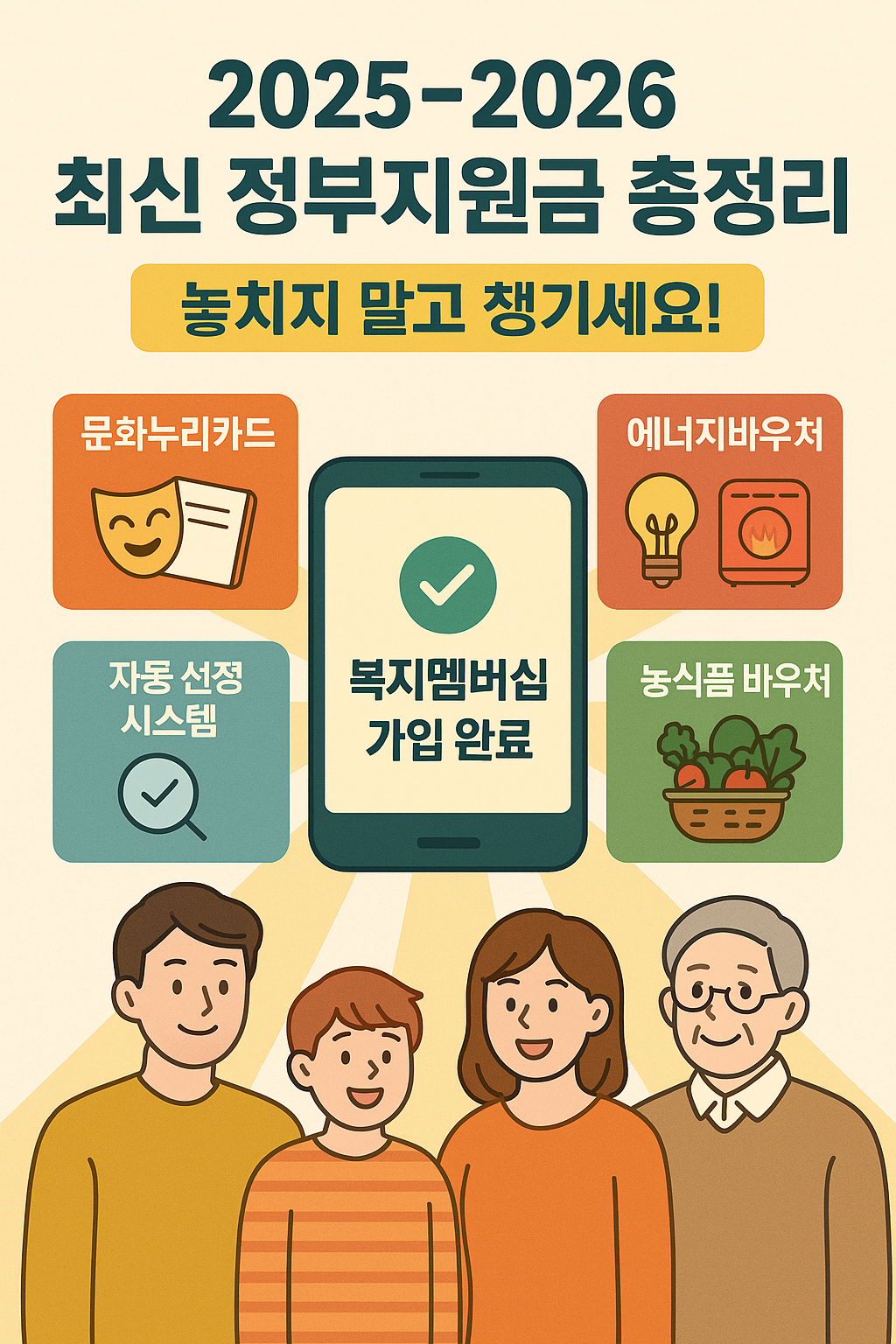 2025~2026 정부지원금 초대형 가이드 │ 복지멤버십·문화누리카드·에너지바우처·농식품 바우처 완벽 정리