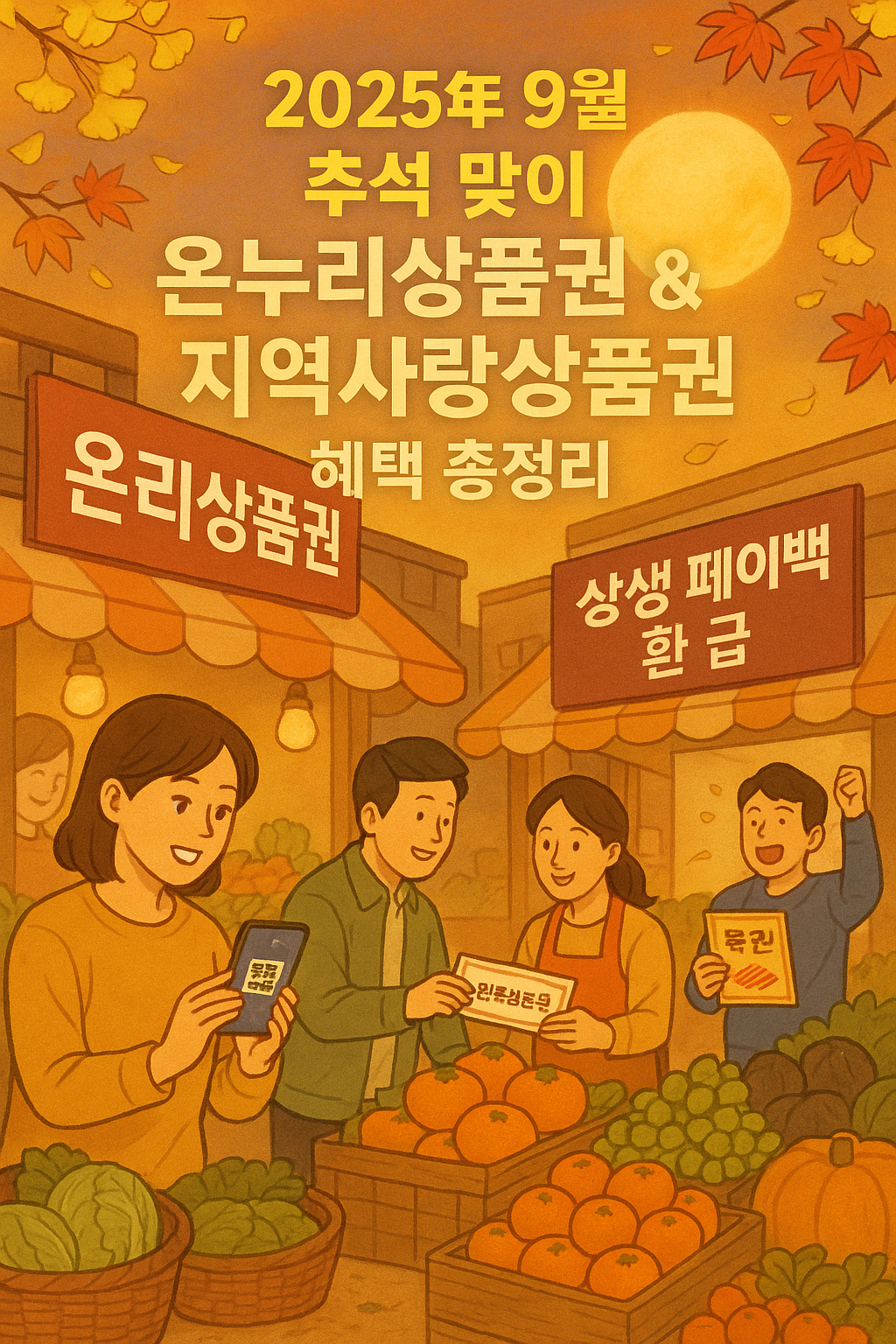 2025년 9월은 추석 명절을 앞두고 정부가 서민 가계 부담 경감과 전통시장 활성화를 목표로 다양한 정책을 동시에 시행하는 달입니다. 특히 지역사랑상품권, 온누리상품권, 상생 페이백, 상생 소비 복권 등은 소비자가 실질적으로 체감할 수 있는 혜택을 제공합니다.