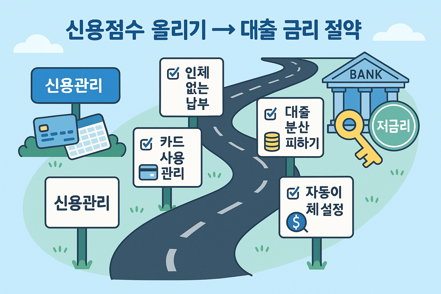 - 거래 이력 길게: 오래된 계좌·카드 유지, 불필요한 신규·다중조회 자제