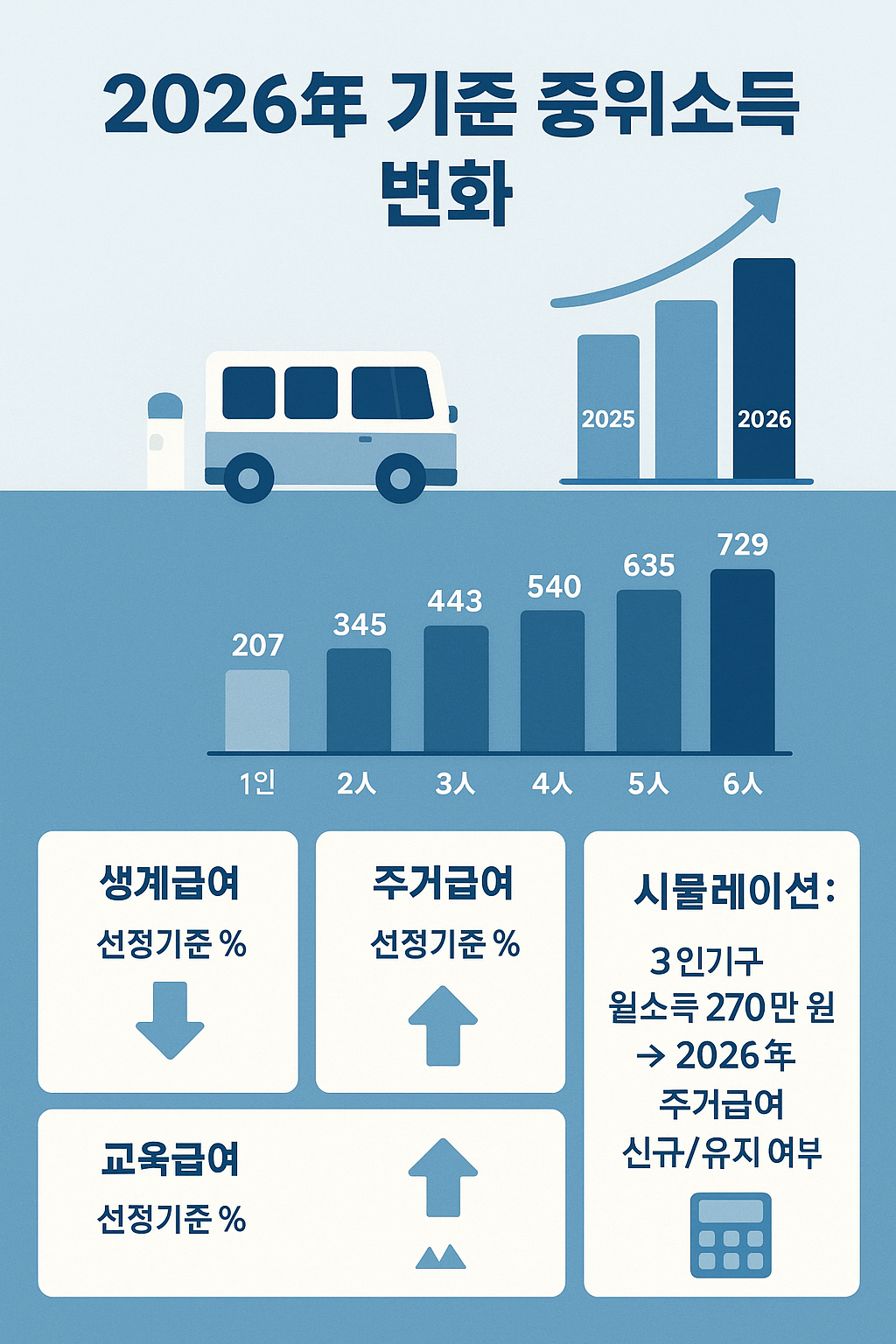 이는 단순한 통계 변화가 아니라, 곧바로 복지제도 적용 기준이 상향된다는 의미입니다. 예를 들어, 동일한 소득을 가진 가구라도 2026년에는 수급 대상에 새로 포함될 수 있습니다.